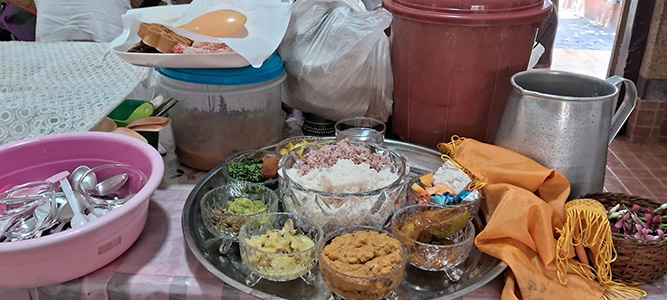 as well as dry rations. They were at the temple to organize the dane from 2.00am at the
