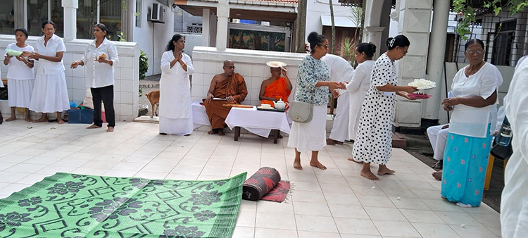 All the necessary items for the bodhi pooja was brought by the members including three Ata Pirikaras and a large amount of Sesu Pirikara was also offered to the three priests, including the Head Priest of Asokaramaya, and two of our staff member priests, Ven Pattiyawala Chandaloka Thero who always participate in the Bodhi pooja travelling all the way from his temple in Meegoda. A Panwaeedma was also done to invoke blessings on the departed members.